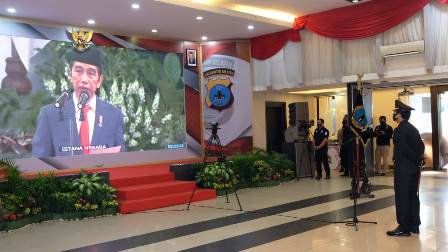 Ditengah Pandemi Virus Corona atau Covid-19, Upacara Hari Bhayangkara tahun ini digelar secara virtual, sederhana dan menerapkan protokol kesehatan. Selain itu dalam pelaksanaanya juga tidak dilangsungkan di lapangan melainkan di Aula Bhayangkari Mathilda Batlayeri Polda Kalsel.