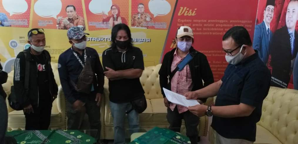 Banjarmasin, BARITO – Puluhan wartawan di Banjarmasin geruduk Bawaslu Provinsi Kalsel perihal dilibatkannya oknum wartawan sebagai saksi dalam aduan salah satu Paslon Gubernur Provininsi Kalsel, Senin (2/11).