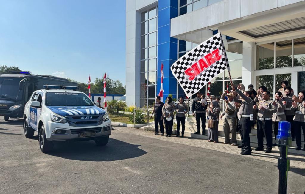 Kontingen dilepas oleh Direktur Direktorat Lalu Lintas Polda Kalsel, Kombes Pol Robertho Pardede di gedung pelayanan BPKB, Ditlantas Polda Kalsel, Km 21, Kecamatan Liang Anggang, Kota Banjar Baru, Kalimantan Selatan, Selasa (1/8/2023).