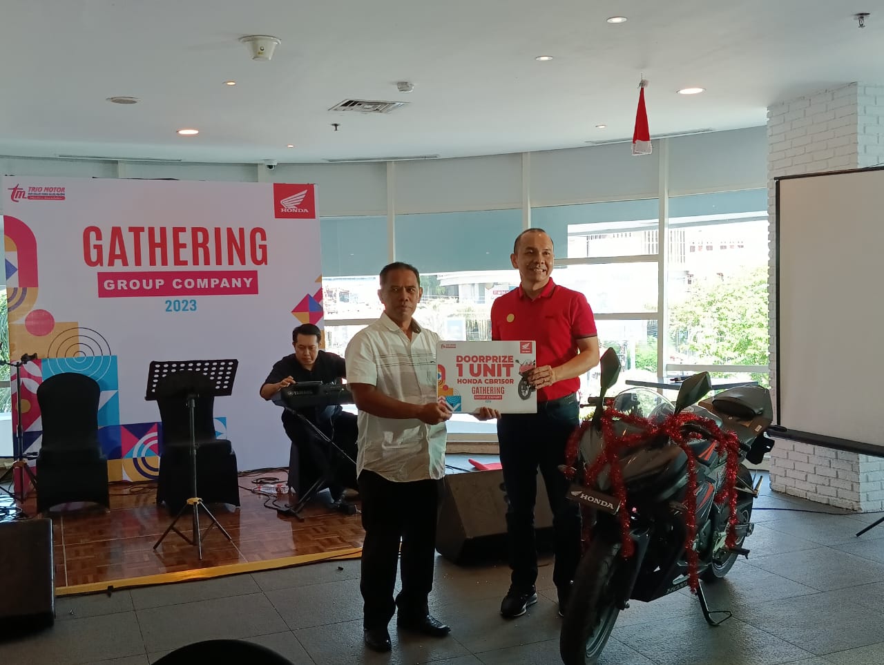 Banjarmasin, BARITOPOST.CO.ID – Dinas Pendidikan dan Kebudayaan (Disdikbud) Kabupaten Balangan mendapatkan hadiah undian (doorprize) 1 unit Honda Sport CBR150R pada Gathering Group Company 2023 yang digelar Trio Motor Main Dealer Kalselteng di Galaxi Hotel Kota anjarmasin, Sabtu (23/12/2023).