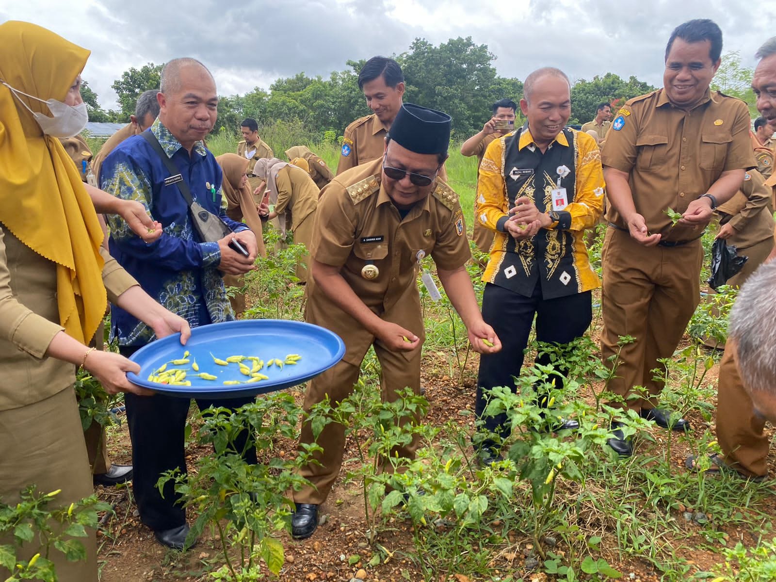 Paman Birin didampingi Staf Khusus Gubernur Rizal Akbar, Kadisdikbud Muhammadun serta sejumlah pejabat dan ASN memanen cabai.