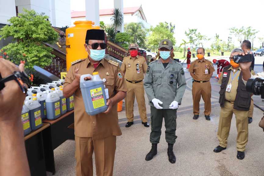 “Saya juga berharap bersama-sama kita tetap menjaga jarak, rajin cuci tangan, tetap memakai masker ketika keluar ruangan untuk meminimalisir serangan dari virus ini, mari kita bersama-sama melawan virus ini,” kata Gubernur saat memimpin Kick off pelaksanaan penyemprotan disinfectan serentak se Provinsi Kalimantan Selatan dengan menggunakan bahan “asap cair”, Senin (6/4) pagi di kantornya.