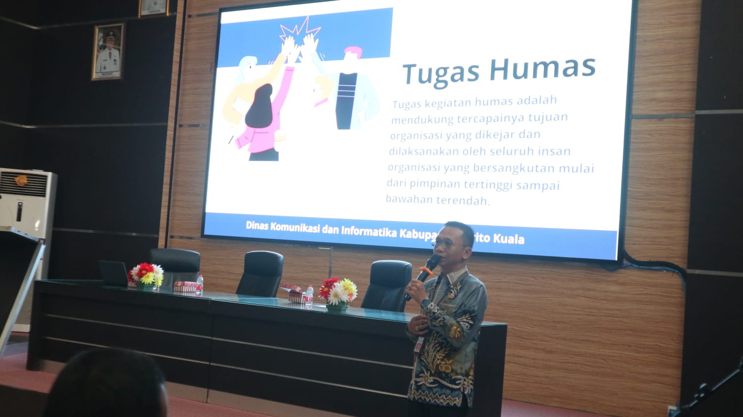 Dalam paparannya, Hery menjabarkan beberapa hal fungsi dari seorang humas juga tugas admin kehumasan pada pengelolaan website PPID, SKPD, Lapor dan media sosial SKPD.