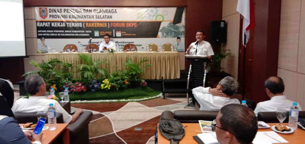 Banjarmasin, BARITO – Dinas Pemuda dan Olahraga (Dispora) Kalsel menggelar Rapat Kerja Teknis (Rakernis) Forum Satuan Kerja Perangkat Daerah (SKPD) yang melibatkan antar Dinas Provinsi, Dinas Kabupaten/Kota, dan mitra kerja se Kalsel, Rabu (12/2) di Hotel Rodhita Banjarmasin.