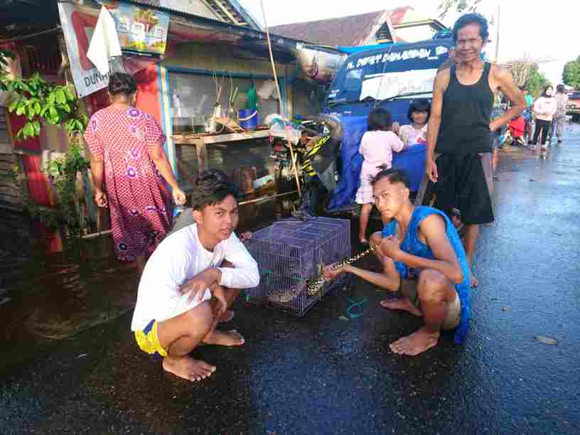 Tentui saja hal itu menjadi perhatian warga yang melintas terutama para pengungsi dan relawan yang lewat menggunakan mobil. “Lihat itu ada ular Sawa cukup besar dikurung di tepi jalan mau dijual,”sebut salah satu warga Sungai Lulut Km 93, Desa Kayu Kacang Sungai Tabuk saat menumpang salah satu mobil BPK Saudara bekerja sama dengan PMK Bekantan kawasan Kelayan Banjarmasin Selatan.