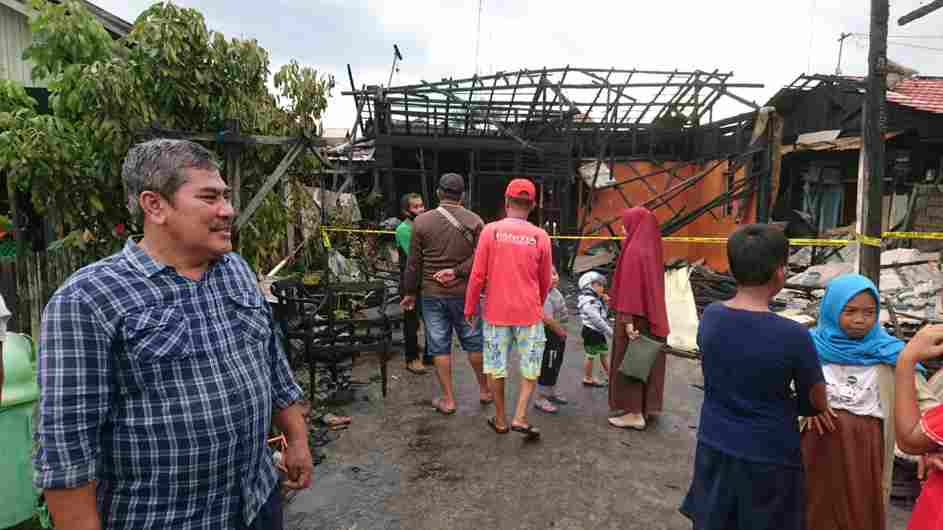 Selain rumah anggota Tenaga Kerja Bongkar Muat (TKBM) ini, juga ikut hangis dinding rumah Tohirin (42) yang juga keluarga Hamdani ayah tiga anak itu. Sementara sebelah kirinya rumah Zainal Hakim hanya gosong atap dan dindingnya.