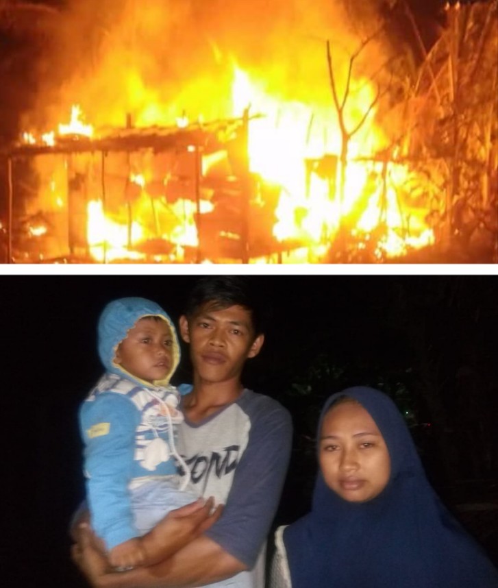 “Tidak menyangka kalau ternyata saat di tinggalkan bersama istri dan anak rumah terbakar,”ucapnya.