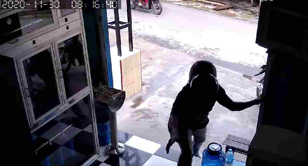 Banjarmasin, BARITO – Pencurian sebuah ponsel jenis Samsung A20 terjadi di salah satu kios air galon di kawasan Jalan Sungai Andai Banjarmasin Utara, Senin (1/12/2020) siang. Pencurian itu terekam Closed Circuit Television (CCTV) berdurasi 1 menit 26 detik di media sosial (medsos) WhatsApp.