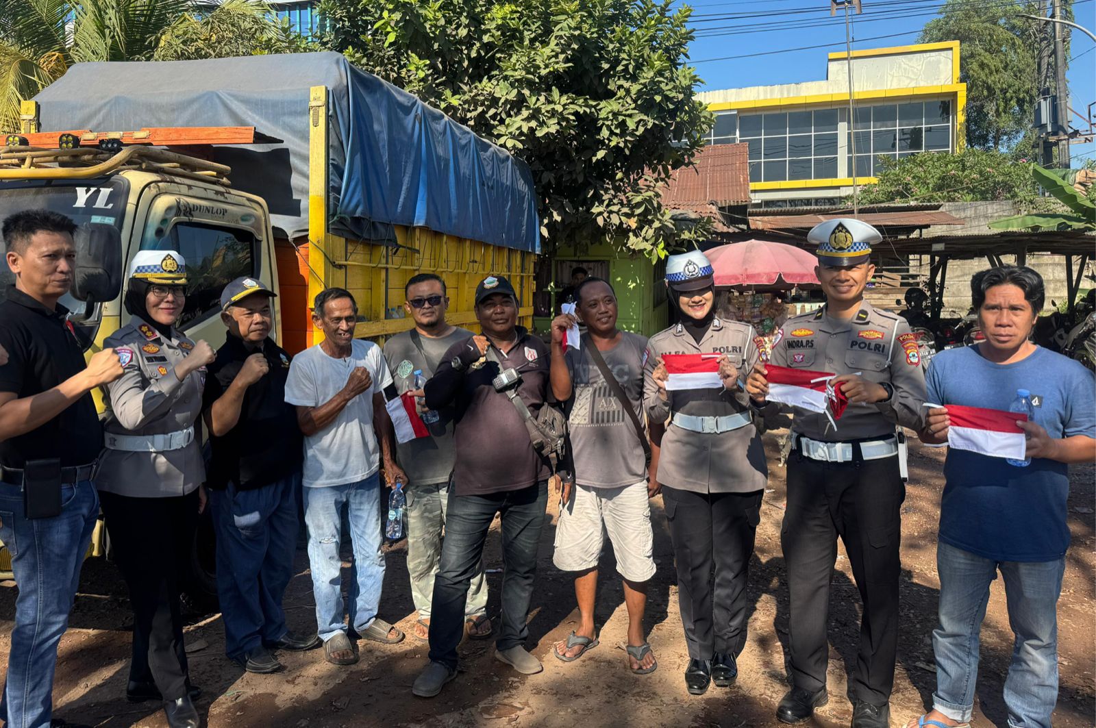 Ditlantas Polda Kalsel Bagikan Bendera Merah Putih, Ajak Pengendara Rayakan Kemerdekaan dan Tertib Lalu Lintas