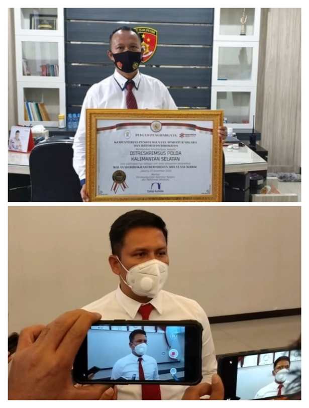 Penghargaan diserahkan Menteri PANRB Tjahjo Kumolo kepada Direktur Direskrimsus Polda Kalsel Kombes Pol Masrur , Senin (21/12/2020)  di Jakarta.