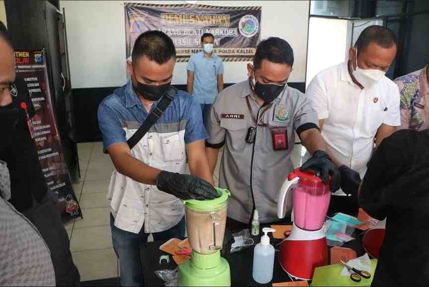 Dipimpin Direktur Reserse Narkoba Polda Kalsel, Kombes Pol Tri Wahyudi diwakili Kanit III Subdit II, Kompol Puryanto, pemusnahan barang bukti tindak pidana narkotika dilakukan dengan cara dilarutkan dengan air lalu diblender.