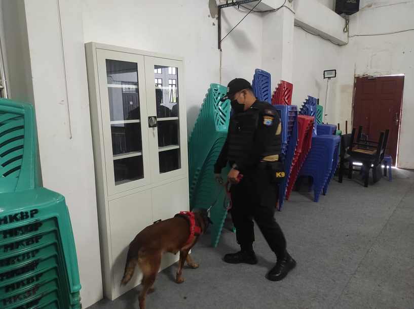 Setiap sudut baik di area dalam maupun luar gereja-gereja ini disisir dengan seksama oleh Unit K-9 Ditsamapta Polda Kalsel.