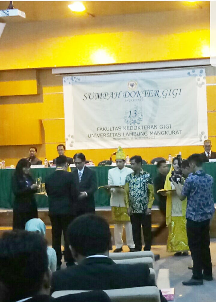 Banjarmasin, BARITO-Sebanyak 7 dokter gigi (drg) baru dari Fakultas Kedokteran Gigi Universitas Lambung Mangkurat (FKG ULM) mengikuti pengambilan sumpah di ruang teater kampus setempat kemarin siang.