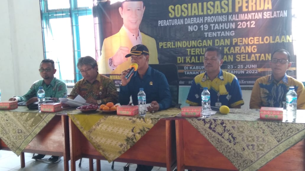 Karena itu, Yani Helmi yang juga Wakil Ketua Komisi II DPRD Kalsel membidangi ekonomi dan keuangan, melaksanakan kegiatan Sosialisasi Perda Kalsel Nomor 19 Tahun 2012 tentang Perlindungan dan Pengelolaan Terumbu Karang di Kalsel bertempat di Desa Sejahtera, Kecamatan Simpang Empat, Kabupaten Tanah Bumbu (Tanbu), Jumat (23/6/2022) sore.