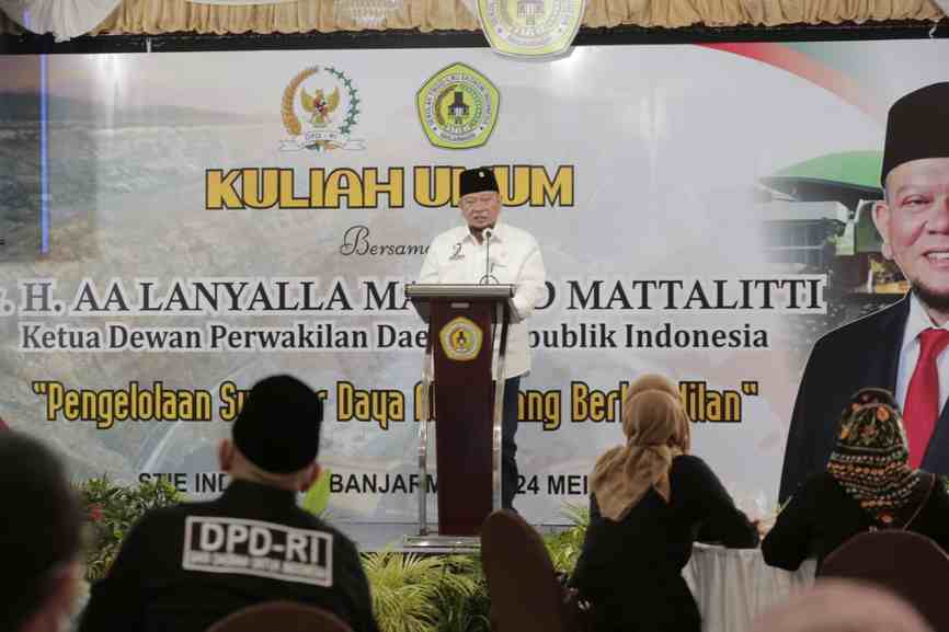 Dalam kunjungan kerjanya ke Provinsi Kalsel, Senin (24/05/2021), AA LaNyalla melakukan berbagai kegiatan, diantaranya memberikan kuliah umum di STIEI Banjarmasin.