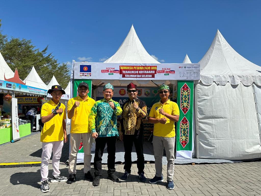 Delegasi Provinsi Kalsel berfoto di depan stand produk unggulan Kalsel pada kegiatan ASEAN Rural Culture Expo, di Tebing Breksi, Desa Sambirejo, Kabupaten Sleman, DI Yogyakarta, Rabu (26/7/2023).(foto : dok.younkfariady)