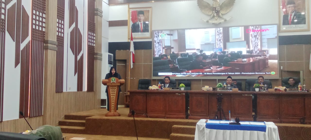 Ucapan itu disuarakan Perwakilan Badan Anggaran DPRD Balangan, Nikmah saat menyampaikan laporan atas pembahasan terhadap Rancangan Peraturan Daerah (Raperda) tentang pertanggungjawaban pelaksanaan Anggaran Pendapatan dan Belanja Daerah (APBD) Tahun Anggaran (TA) 2023 di ruang rapat paripurna DPRD Balangan, Sabtu (13/7/2024).