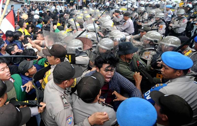 Larangan pihak kepolisian itu membuat demo memanas. Ribuan mahasiswa memaksa memasuki halaman gedung DPRD dengan merangsek barikade polisi.Terjadi aksi saling dorong.Lemparan botol air mineral pun beterbangan.