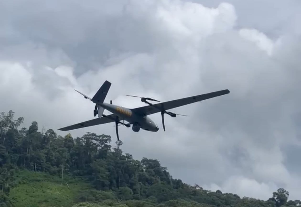 Sebuah drone jenis UAV-VTOL (Unmanned Aerial Vehicle – Vertical Take-Off and Landing) milik Polda Kalimantan Selatan dilaporkan jatuh ketika sedang melakukan penerbangan menuju titik koordinat jatuhnya helikopter, di area terbuka KM 80 Desa Emil Baru, Kecamatan Mantewe.
