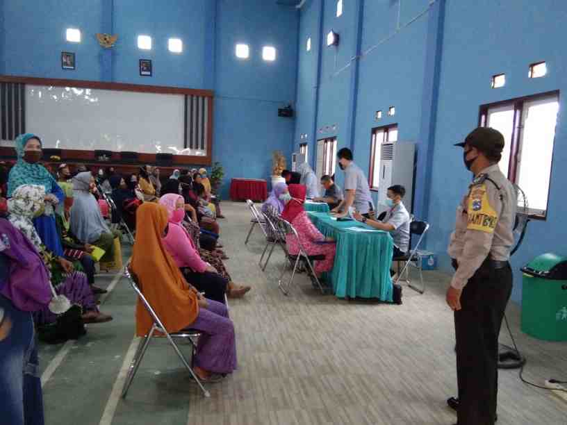Warga diatur agar tidak berkerumun dan menjaga jarak sesuai prosedur Protokol Kesehatan (Prokes).