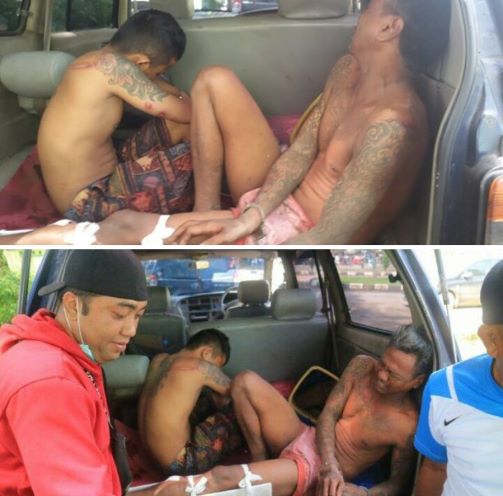 Diduga pelaku dari warga pekauman Banjarmasin Selatan itu setelah dibuka bajunya di lengan keduanya memiliki tato. Setelah menunggu anggota Polsek Banjarmasin Utara, merekapun diserahkan dan sebelumnya sempat diamankan ke dalam belakang mobil dari pengeroyokan warga yang geram.