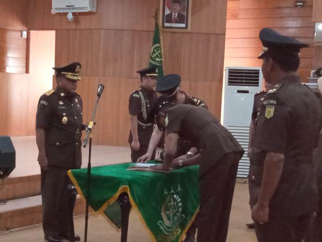 Pengambilan sumpah dan serah terima jabatan dilakukan langsung Kepala Kejaksaan Tinggi Kalsel Arie Arifin SH MH di Aula Anjung Papadaan Kejati Kalsel, Jumat (2/8) pagi kemarin.