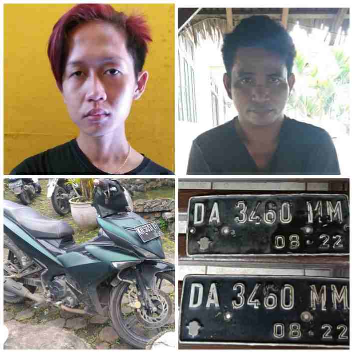 Termasuk juga dua keping plat nomor sepeda motor DA 3460 MM. Putra ditangkap Jumat (12/2/2021) tadi, di Jalan Lingkar Selatan dalam tepatnya di dekat sekolah SD Ukhuwah.