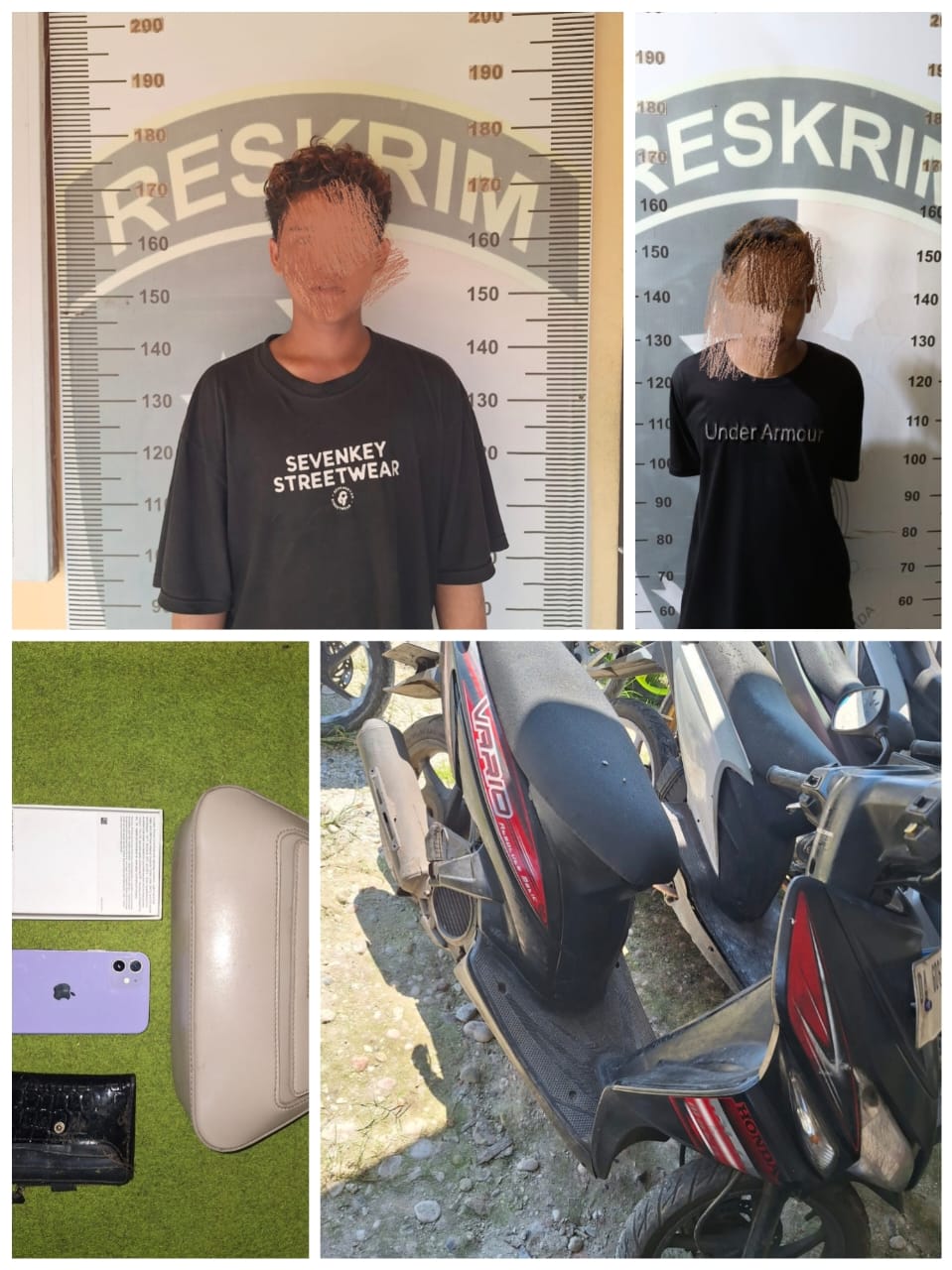 Sebagai barang bukti, diamankan sepeda motor Yamaha Mio Soul warna hitam yang digunakan saat beraksi. Polisi juga menyita satu tas merk C&K (Charles & Keith) warna cokelat muda berisi iPhone 12 warna ungu, uang tunai Rp600 ribu, serta dompet warna hitam.
