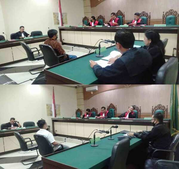 Keduanya sendiri nampak menghadari sidang secara langsung, sebab statusnya sejak dipenyidikan tidak dilakukan penahanan.