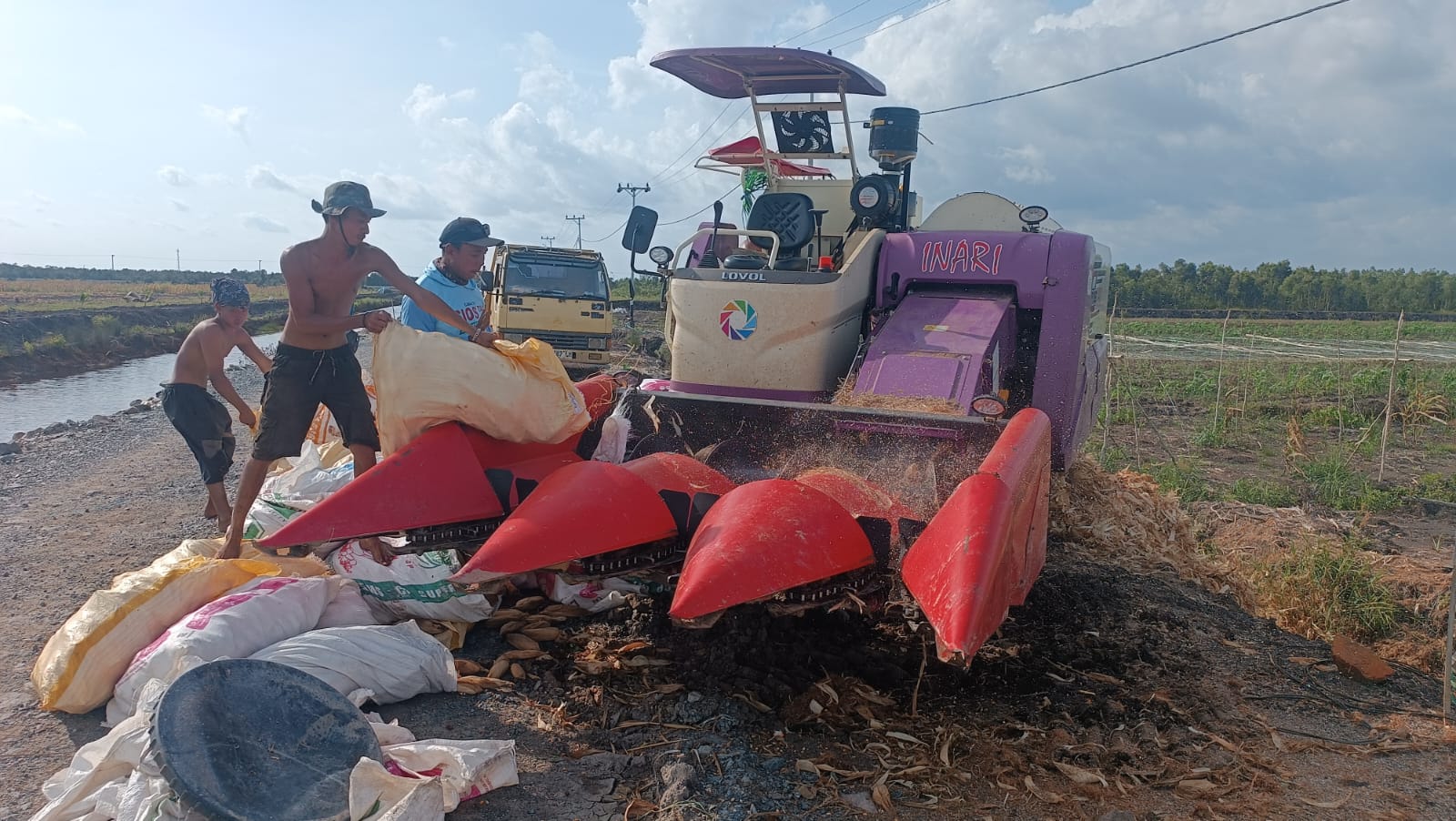 Tak hanya menyediakan lahan, dukungan dari Kapolda Kalsel juga diwujudkan melalui penyediaan alat panen modern berupa Corn Combine Harvester yang mampu mempercepat proses panen sekaligus pengupasan kulit jagung.