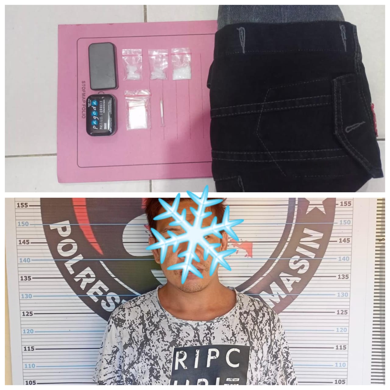 Banjarmasin, BARITOPOST.CO.ID – Pemuda berinisial SH (33) ditangkap polisi saat hendak melakukan transaksi narkoba jenis sabu-sabu sebanyak tiga paket dengan total berat 2,27 gram (tanpa plastik klip), Jumat (18/7/2025) sekitar pukul 18.00 Wita. Pengangguran ini digaruk di depan Masjid Jami Nuruddin, Jalan Kelayan A RT 01 RW 01, Kelurahan Murung Raya, Kecamatan Banjarmasin Selatan.