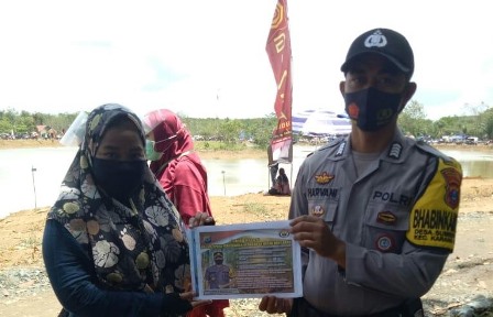 Dalam kesempatan tersebut, Bripka Harvani menyampaikan pesan-pesan Kamtibmas tentang bahaya karhutla dan menjelaskan bahwa membakar hutan mapun lahan ada sanksi pidana bagi pelaku yang membakar hutan secara sengaja maupun tidak sengaja.
