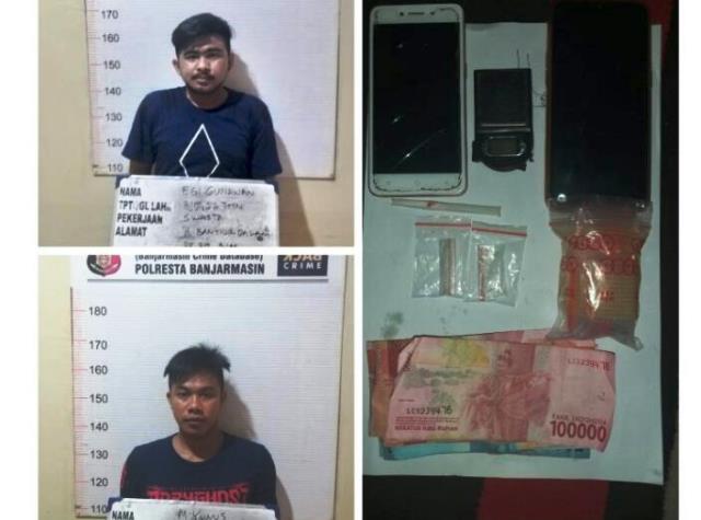 Kapolsekta Banjarmasin Barat, AKP Mars Suryo Kartiko melalui Kanit Reskrim, Iptu Sunarto, kedua tersangka bersama barang bukti dua paket kecil  Sabu berat 1,4 Gram,  satu timbangan digital dan lainnya.