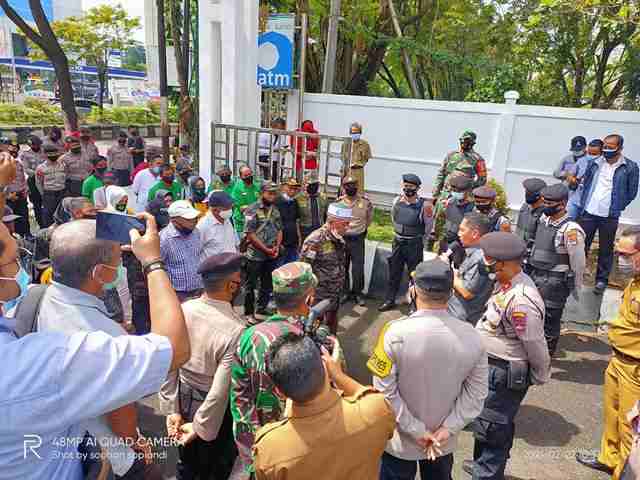 Puluhan massa tersebut menyambangi gedung DPRD Kalsel di Jl Lambung Mangkurat Banjarmasin, setelah menggelar aksi serupa di depan Kantor Pertamina Cabang Banjarmasin, Senin (22/2/2021).