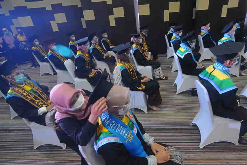 Sementara itu alumnus mahasiswi S1 terbaik Latifah mengatakan, target kuliah terpenuhi, 3 tahun 5 bulan, walaupun sempat diikuti secara online, tetapi ia komitmen belajar setiap malam.