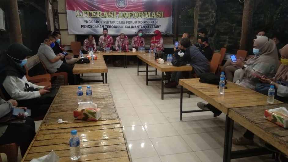 Banjarmasin, BARITO – Forum Koordinasi Pencegahan Terorisme (FKPT) Kalimantan Selatan (kalsel) menggelar Literasi Informasi bersama awak media dengan bertemakan “Ngobrol Pintar Cara Forum Koordinasi Pencegahan Terorisme Kalimantan Selatan”, Jum’at malam (11/12) di Kota Banjarmasin