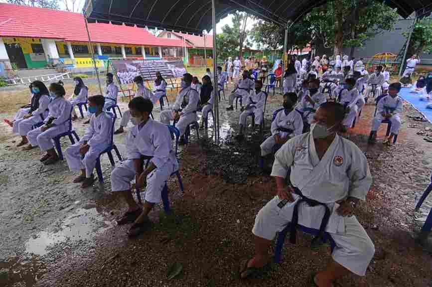 Banjarmasin, BARITO – Federasi Karate Tradisional Indonesia (FKTI) Korda Kalsel, melaksanakan syukuran dengan melaksanakan protokol kesehatan ketat di Halaman TK Pembina, Jalan Pangeran Hidayatullah (Banua Anyar), Minggu (10/1/2021)