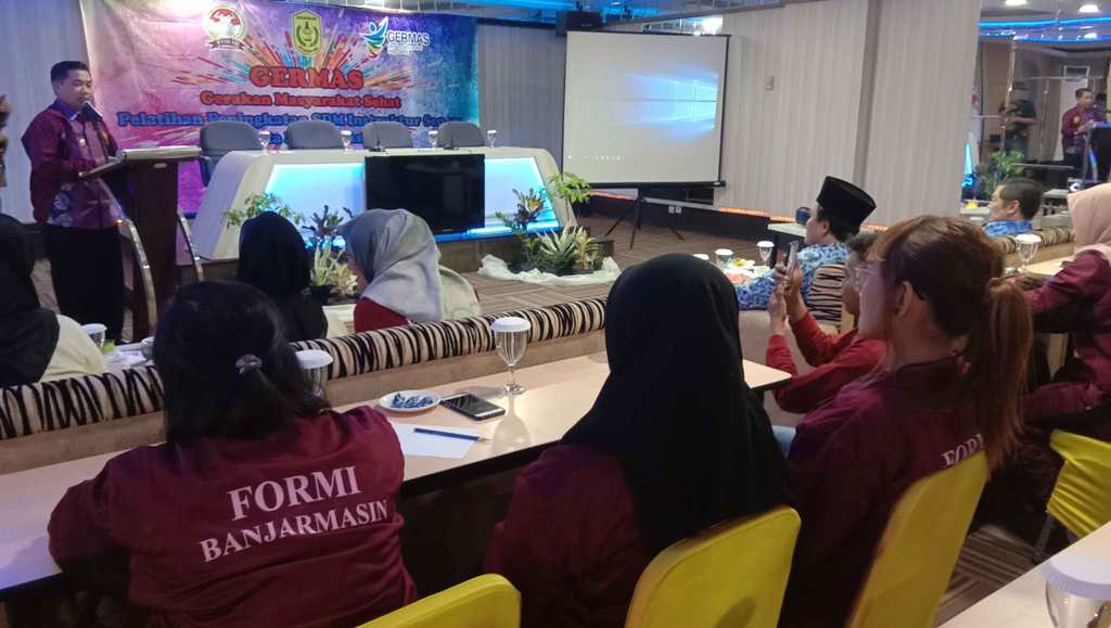 Banjarmasin, BARITO – Federasi Olahraga Rekreasi Masyarakat Indonesia (Formi) Banjarmasin yang didukung Pemkot Banjarmasin tengah mengembangkan program Gerakan Masyarakat Hidup Sehat (Germas). Salah satunya, mengadakan pelatihan instruktur senam yang berlangsung 17-21 Desember 2019 di Hotel Victoria Banjarmasin.