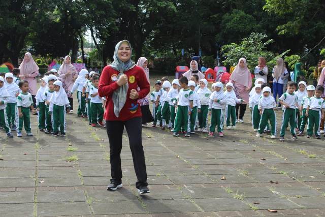 Diawali dengan senam bersama yang di pimpin Intruktur Senior Sulastri, Lies Pribadi, Yuni Atifah dan Yenny Frida Luntungan, anak-anak, wali murid yang mendampingi beserta guru paud turut ikut bergerak dengan senam Bersama.
