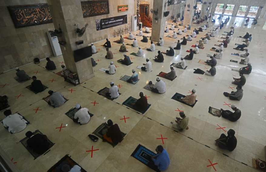 Masyarakat di Kalsel hingga saat ini terus disiplin dengan protokol kesehatan, terlihat di foto (1), jamaah Masjid Raya Sabilal Muhtadin Melaksanakan Shalat Jumat dengan jarak 1 meter