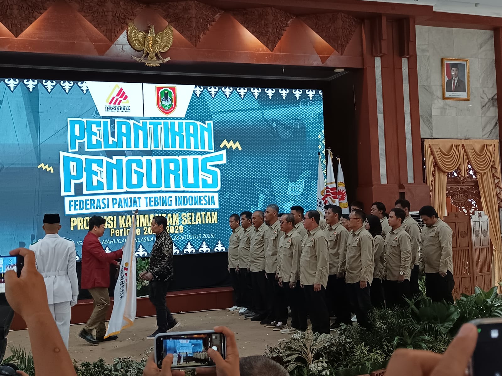 Pengukuhan pengurus FPTI Kalsel dilakukan langsung Ketua Bidang Tebing Alam dan Rekreasi Pengurus Pusat (PP) FPTI, Robertus Robet, yang turut disaksikan Gubernur Kalsel H. Muhidin diwakili Plt Kadispora Kalsel, M. Fitri Hernadi.