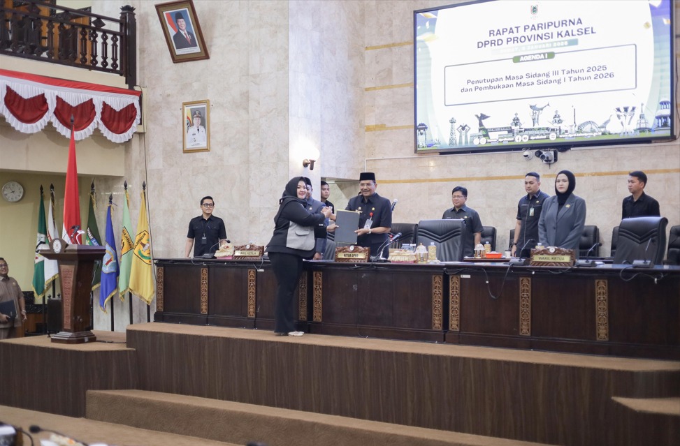 Dikesempatan itu Supian HK membacakan landasan perubahan dengan lampiran keputusan DPRD Kalsel Nomor 1 Tahun 2026 tentang Keputusan DPRD Kalsel tentang Perubahan atas Keputusan DPRD Nomor 34 Tahun 2025 tentang Susunan Pimpinan dan Anggota Banmus, Komisi, Bapemperda, Badan Anggaran dan Badan Kehormatan DPRD Kalsel masa jabatan tahun 2024-2029.