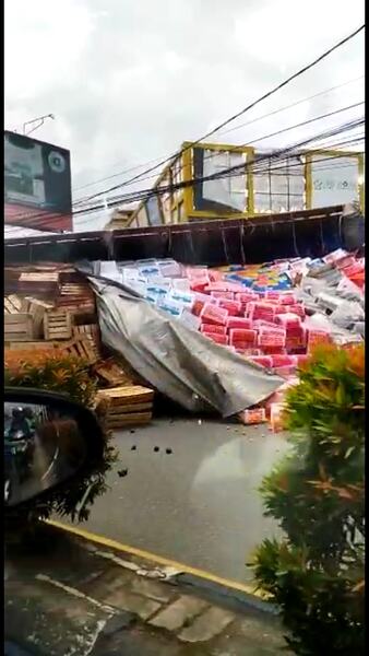 Jalan S Parman depan eks Karaoke Lyrik pun sementara ditutup dan dialihkan menggunakan jalur satunya oleh petugas Sat Lantas Polresta Banjarmasin, Lantaran truk dan puluhan kotak kayu buah tersebut berserakan di jalan.