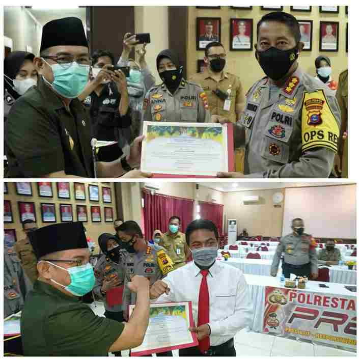 Banjarmasin,  BARITO – Sebagai bentuk apreasiasi  terhadap prestasi Sat Narkoba menyita 135,02 Kg,  Pejabat Walikota Banjarmasin Akhmad Fydayeen memberikan penghargaan kepada Kapolresta dan satuannya, Senin (21/6/2021) pagi.  Penghargaan itu diberikan agar memotivasi aparat penegak hukum lainnya dalam memberantas narkoba.