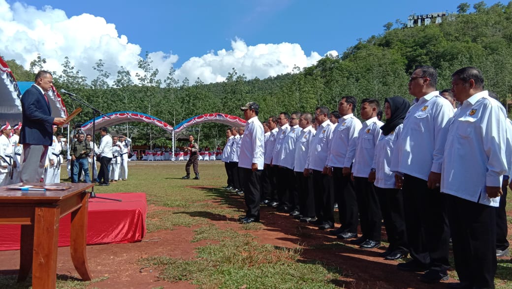 PELANTIKAN-Ketua Umum Federasi Olahraga Karate-Do Indonesia (FORKI) Pusat, Jenderal (Purnawirawan) Gatot Nurmantyo melantik Paman Birin yang tidak lain Gubernur Kalsel H Sahbirin Noor menjadi Ketua Umum FORKI Kalsel, Rabu (30/1) siang di Objek Wisata Kiram Park Banjarbaru.