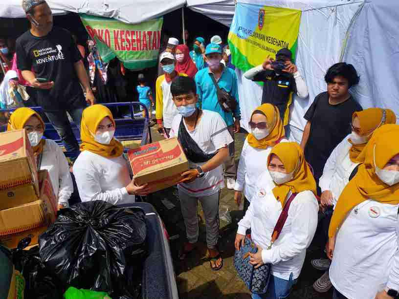 Selain menyerahkan bantuan kepada relawan yang bertugas di posko-posko pengungsian, ibu-ibu Gatriwara Kalsel juga menyempatkan diri meninjau lokasi yang dijadikan tempat menginap para pengungsi, sekaligus menyerahkan langsung bantuan dan berdialog terkait kondisi dan kebutuhan para pengungsi dengan dipandu oleh para tim relawan.