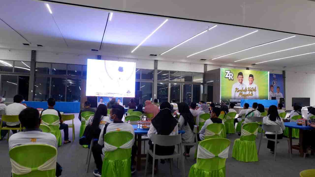 Kemeriahan ratusan relawan dan kader partai pengusung ZR menggema ketika Paslon mereka yang tampil di studio TVRI Kalsel dalam debat publik perdana cabup-cawabup Tanah Bumbu melalui nonton bareng (Nobar) tayangan relay layar lebar di ruang Auditorium Posko Induk, dikawasan Kodeco Simpang Empat.