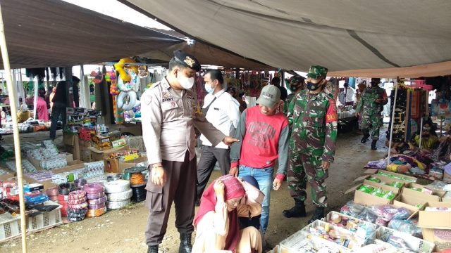 Polda Kalsel, Polres Tabalong – 3 pilar Kecamatan Banua Lawas Kabupaten Tabalong lakukan Operasi Yustisi di pasar, Rabu (23/12)