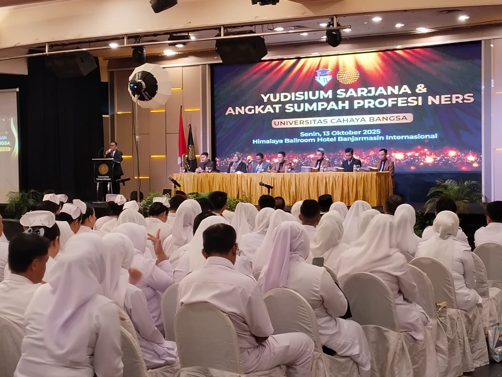 Banjarmasin, BARITOPOST.CO.ID – Gelaran Yudisium Sarjana & Angkat Sumpah Profesi Ners Universitas Cahaya Bangsa (UCB) di Himalaya Ballroom Hotel Banjarmasin Internasional berlangsung sukses dan lancar pada Senin (13/10/2025).