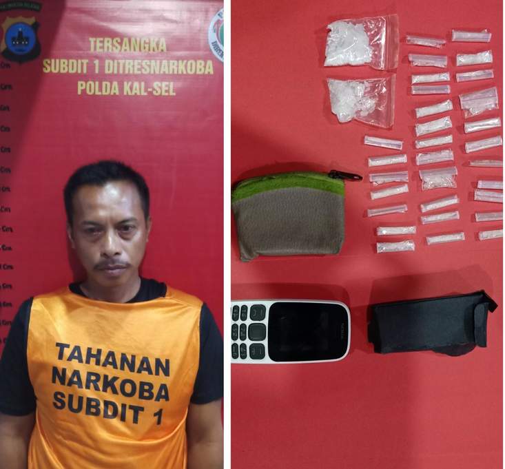Pihaknya menyita 32 paket sabu dengan berat kotor 19,02 gram (bersih 12,90 gram), sebuah kotak kecil terbuat dari kertas warna hitam, dompet warna abu-abu dan ponsel. Selanjutnya tersangka digelandang ke Kantor Ditresnarkoba Polda Kalsel untuk proses lebih lanjut